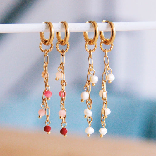 Ohrringe mit Perlenkette, rot