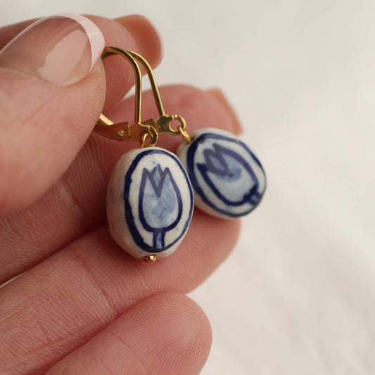 Blaue Porzellan Tulpen Ohrringe