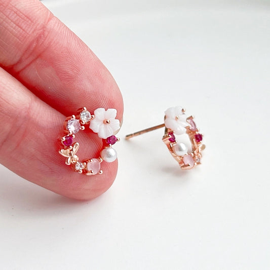 Bald wieder verfügbarBlumenkranz Ohrringe, Rosa
