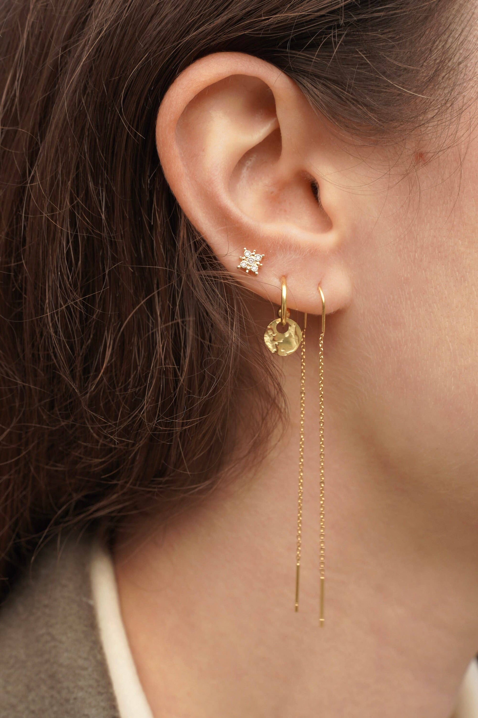 Ces petites boucles d'oreilles créoles, ornées d'un petit pendentif rond en acier inoxydable, séduisent par leur design moderne et minimaliste. Elles peuvent être combinées de nombreuses façons, aussi bien le jour que le soir.