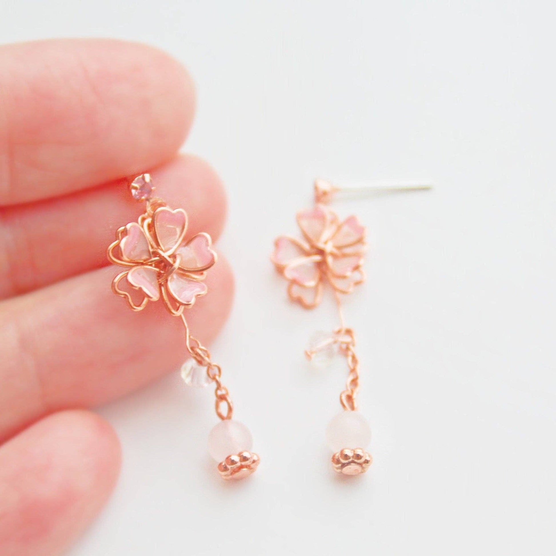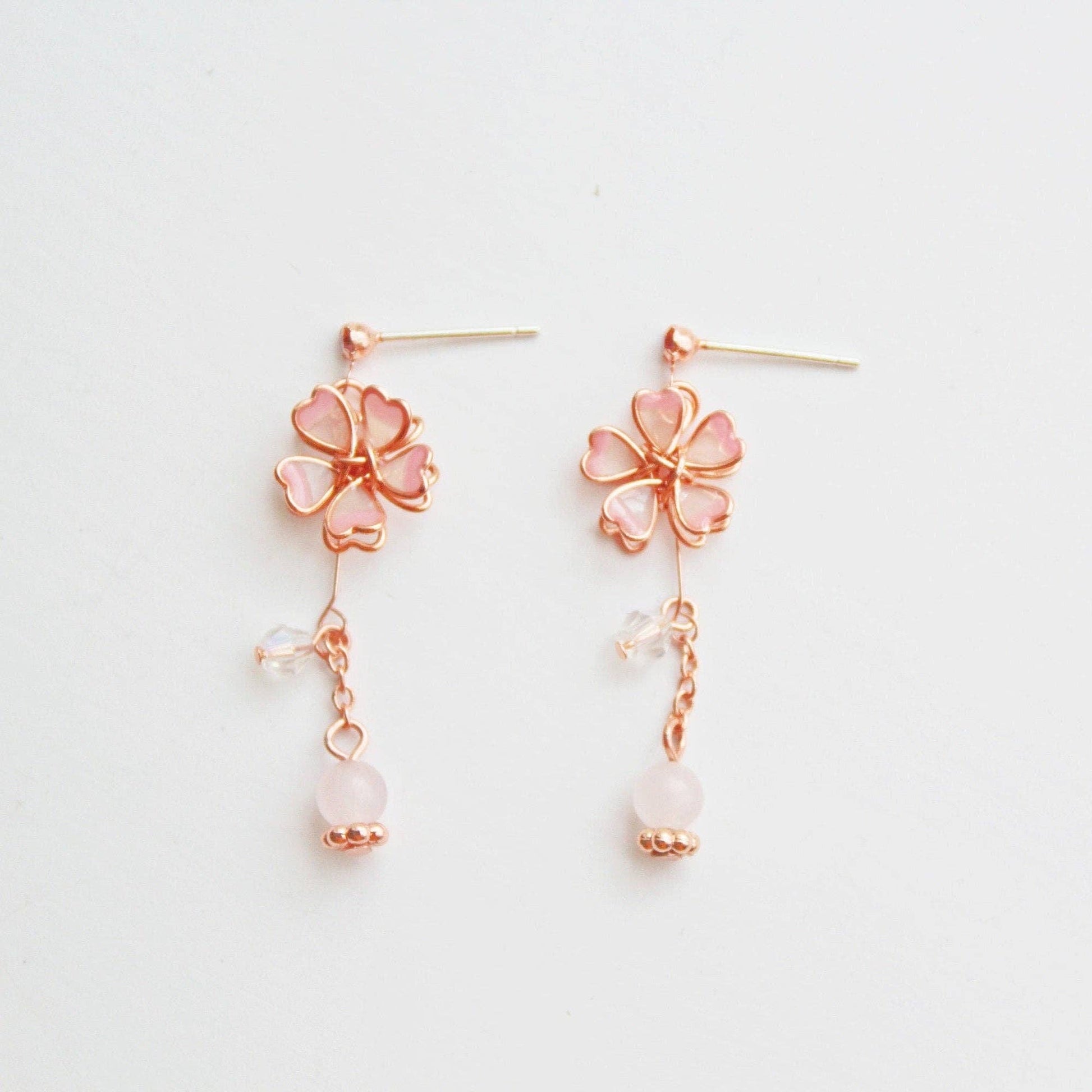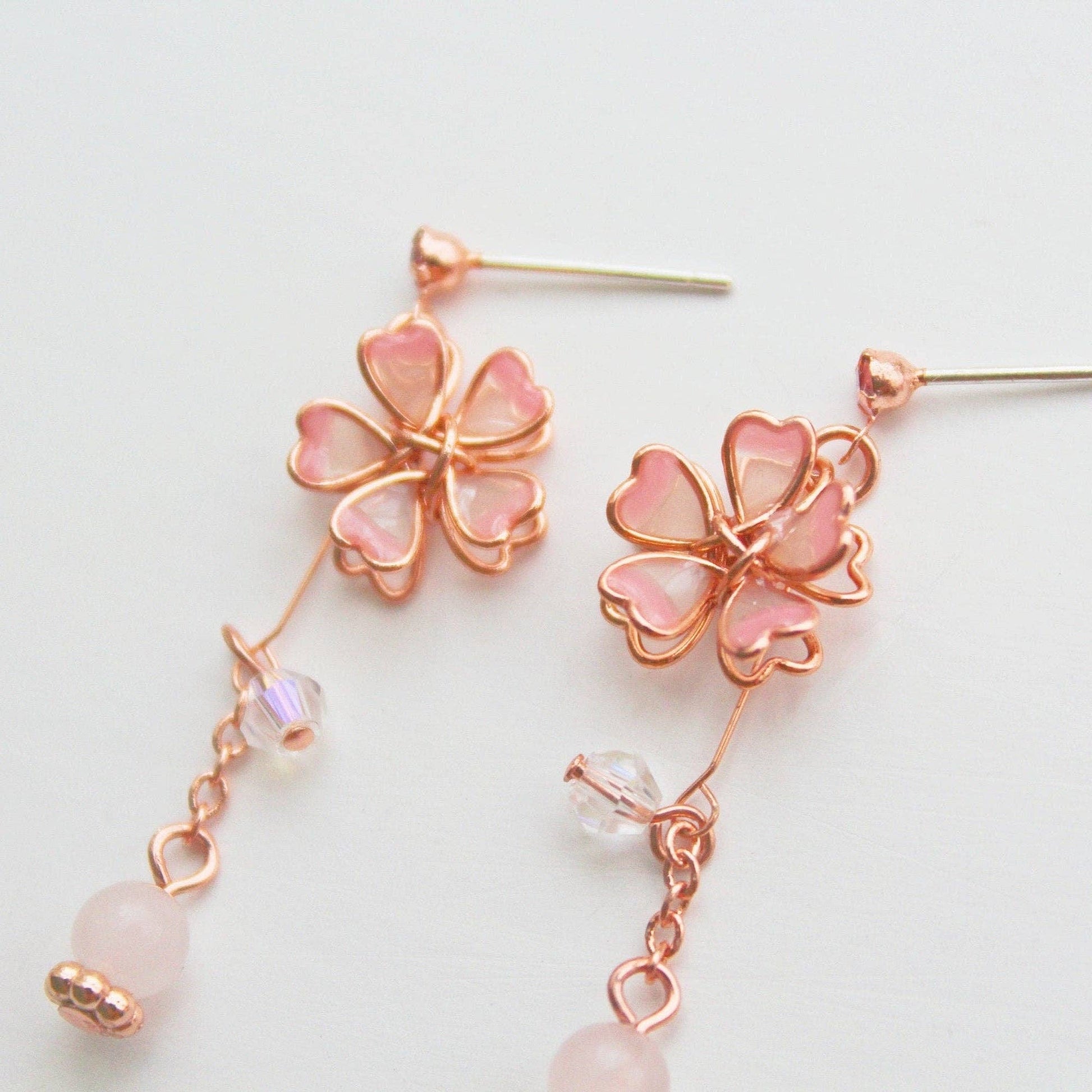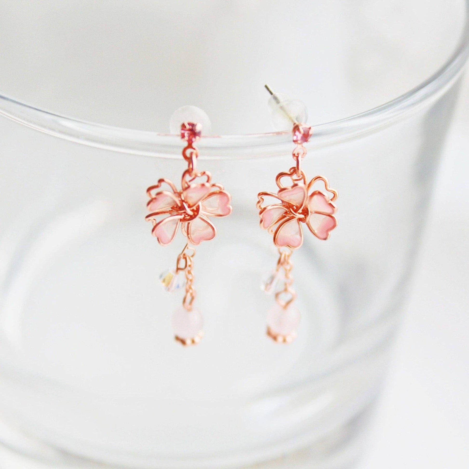 Zarte Eleganz trifft auf liebevolle Handarbeit: Die Krischblütenohrringe bezaubern mit kleinen, doppellagigen Kirschblüten in sanftem Rosa. Die filigranen Blüten werden aus roségoldfarbenem Kupferdraht von Hand gefertigt und schaffen einen einzigartigen, dreidimensionalen Effekt. In Kombination mit den hochwertigen Sterlingsilber-Steckern entsteht ein edles, zugleich verspieltes Schmuckstück – perfekt für jeden Anlass.